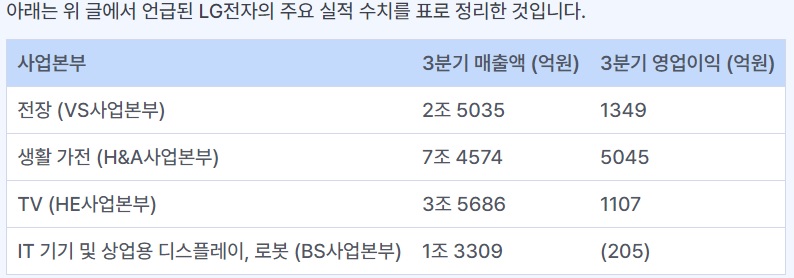 오늘은 LG전자의 3분기 실적과 전망에 대해서 알아보겠습니다.